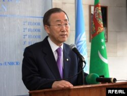 “Men regionyň ýolbaşçylaryny halkara adam hukuklary kanunlaryny, özleriniň gol çeken beýleki şertnamalaryny ýerine ýetirmeklige çagyrdym. Şeýle hem olary Birleşen Milletler Guramasynyň Adam hukuklary Geňeşiniň berýän ündewlerini doly ýerine ýetirmeklige çagyrdym” diýip, Ban aýtdy.