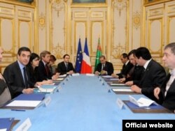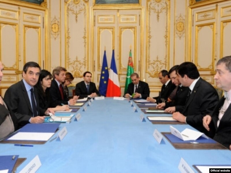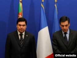 Türkmenistanyň prezidenti Berdimuhamedow (çepde) Fransiýanyň premýer-ministri Fransua Fillon bilen, Pariž, fewral, 2010.