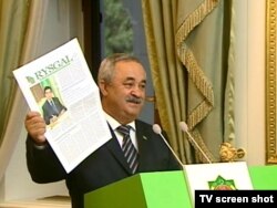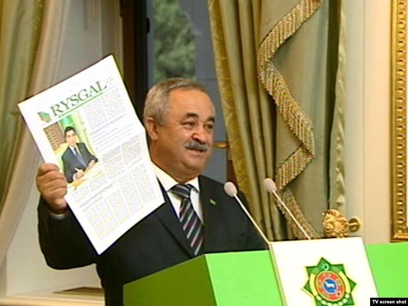 Türkmenistanyň senagatçylar we telekeçiler birleşmesiniň başlygy A.Dadaýew “Rysgal” atly täze hususy neşir bilen tanyşdyrýar, sentýabr 2010.