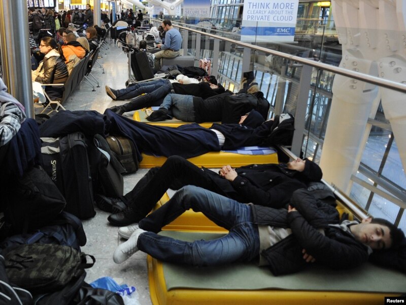 Sowuk gyş güni köçelerini gar basyp ýatan Ýewropanyň uly şäherlerinde on müňlerçe ýolagçy aşjak ýerine aşyp bilmän, ýa uçar meýdanlarynda nobata dur ýa-da ýörite gurnalan wagtlaýyn lagerlerde garaşyp otyr.