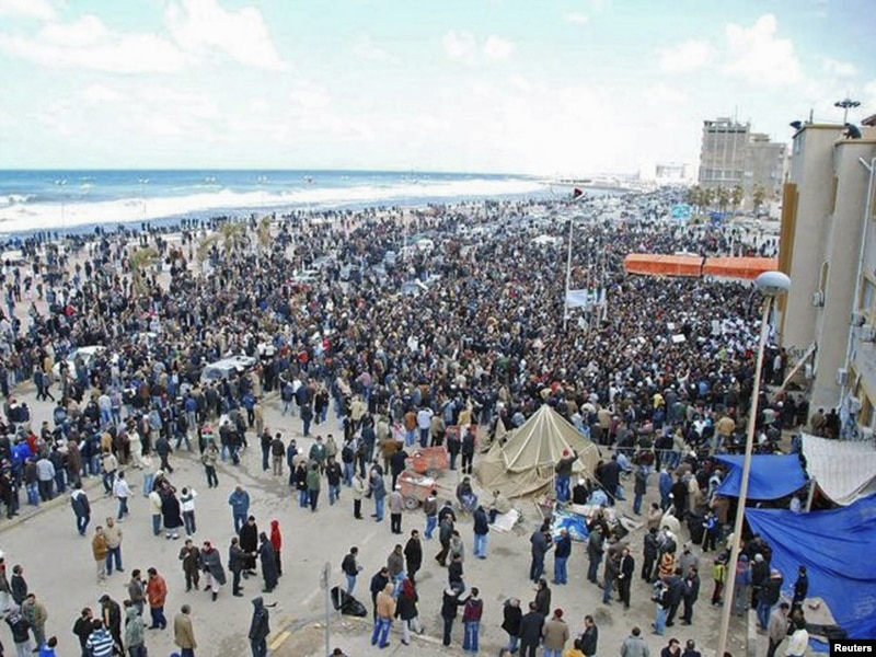 Bengazide esgerleriň we polisiýanyň yza çekilmegi sebäpli protestçiler şäheriň aglaba bölegini eýeläne meňzeýär. Adam hukuklary boýunça halkara “Human Rights Watch” guramasynyň berýän maglumatyna görä, ýurtda tolgunyşyklar başlaly bäri azyndan 233 adam ölüpdir. Bu hasabatda düýn gije ölen 61 protestçi göz öňünde tutulanok.