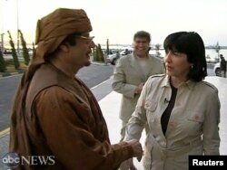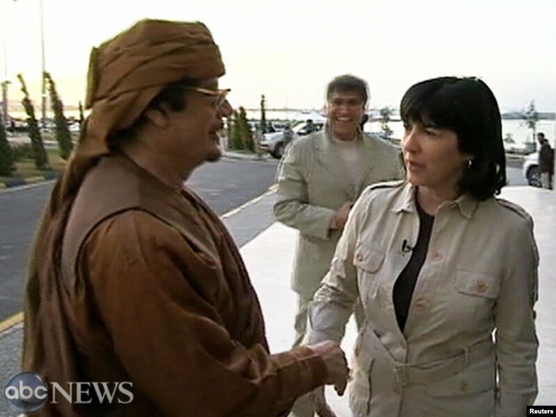 Muammar Kaddafi ABC telekanalynyň žurnalisti Kristian Amanpur bilen söhbetdeşligiň öňüsyrasynda, Tripoli, 28-nji fewral.