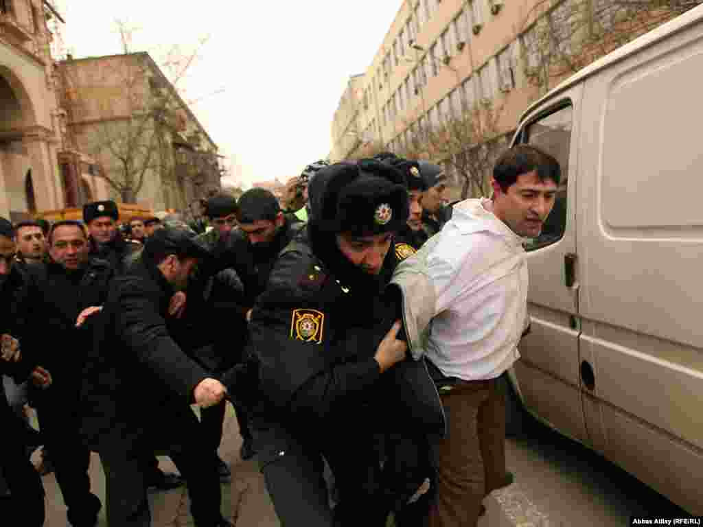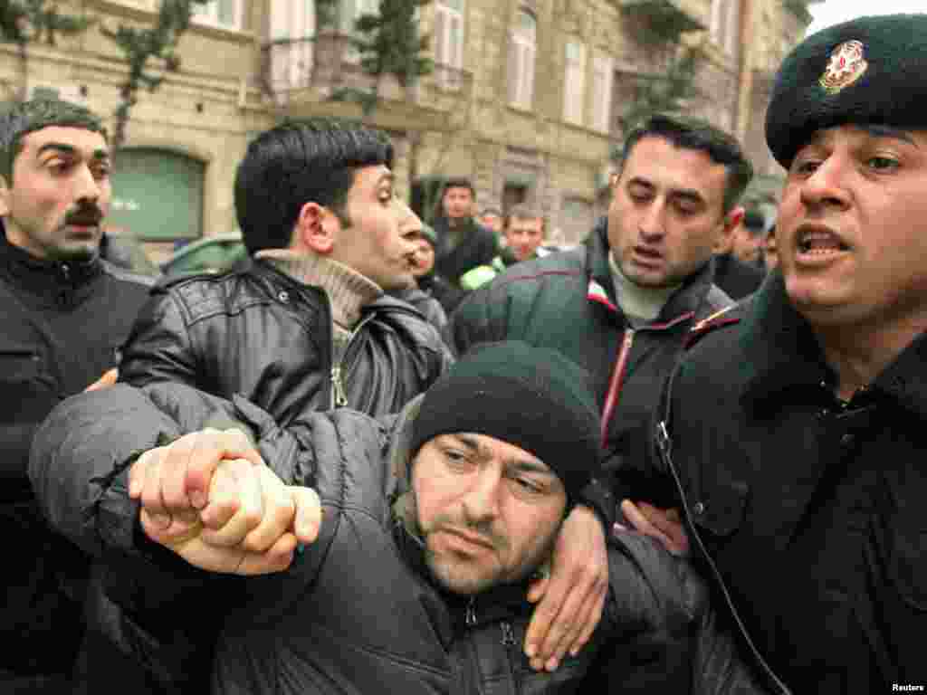 Small groups of Azeri youths staged antigovernment protests in the capital, Baku, despite a police crackdown on protest organizers in recent days. Inspired by popular uprisings in Arab nations, young Azerbaijani activists had campaigned via Facebook to designate March 11 as the "Great People's Day" and stage protests against the country's autocratic leader Ilham Aliyev.