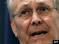 Tussaghana edilen hüjüm barada Ramsfeld esasan režimiň “bu işi yslmaçylar etdi” diýýänini gaýtalaýar. Ol bu adamlary hem bir gezek “gozgalaňçylar” diýip atlandyrsa, bir gezek “pitneçiler” diýip atlandyrýar.