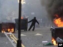 Ýüzi nikaply ýaşlaryň gatnaşmagynda Londonyň ençeme künjeklerinde başlanan bidüzgünçilikler ýene birnäçe şäherlere ýaýrady. (Surat: Londonyň gündogarynda, 8-nji awgust)