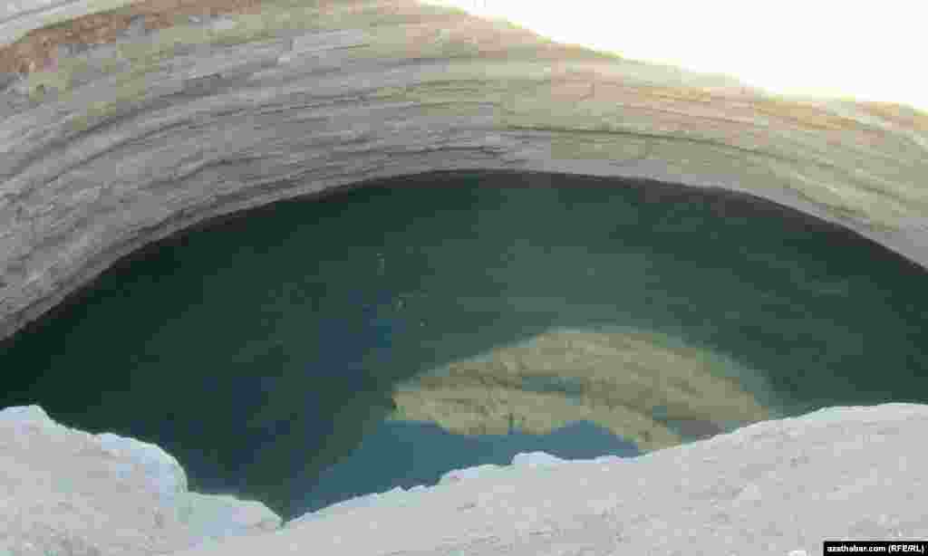 Garagumda Mämmetöwez işan gonamçylygy bilen "Aeroport" obasynyň aralygyndaky gaz kraterinde gögümtil mawy reňkli suw bar.