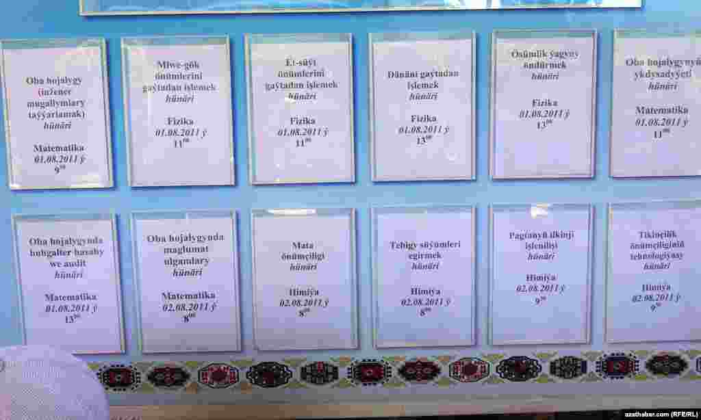 1-nji awgustda Türkmenistanda ýokary okuw jaýlaryna giriş synaglary başlandy. Şu ýyl ýurduň ýokary okuw jaýlaryna studentleriň 5766 sanysy, orta hünärment okuw jaýlaryna bolsa 5765 okuwçy kabul ediler.