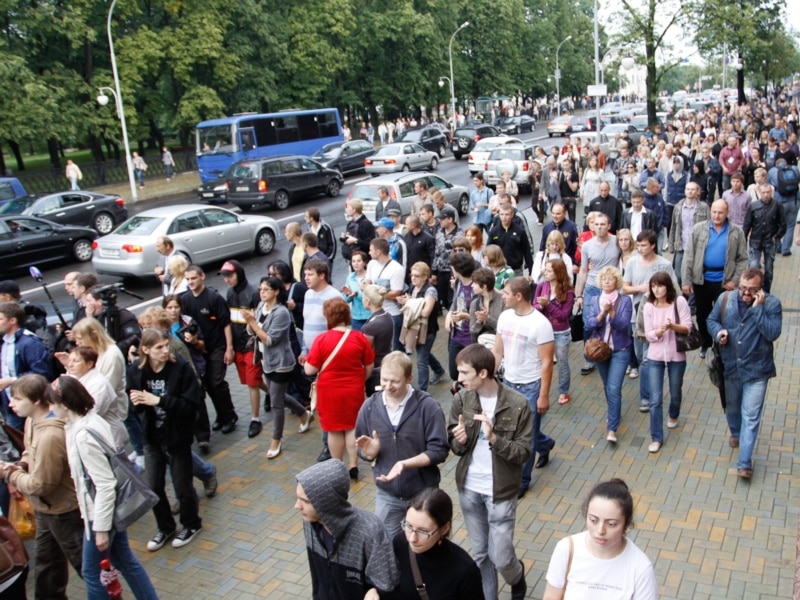 Çarşenbe güni Belarusda geçirilen demonstrasiýalarda 1,000 töweregi adam köçelere çykyp, özleriniň nägileligini, hiç bir şygarsyz, diňe el çarpyşmalar bilen bidiripdiler. Ýurduň polisiýasy köçeleri ýapyp, protestçileriň ýörişini böwetlemek ýaly çäreler bilen demonstrasiýanyň öňüni almaga taýýarlyk görüpdi.